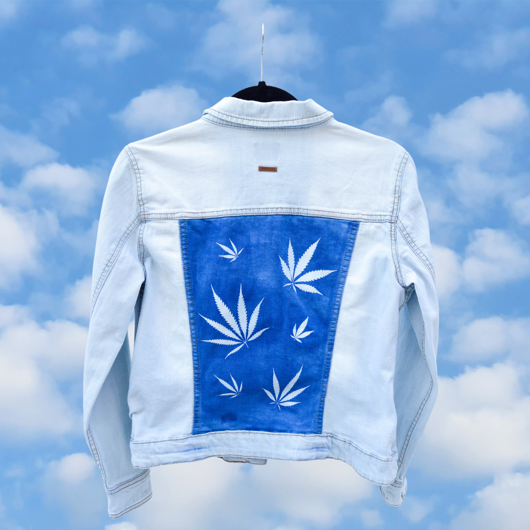 Introducing my one-of-a-kind upcycled denim jacket, designed and dyed with unique real cannabis leaves to showcase your love for the plant. This jacket is sustainably made using repurposed MNG Jean brand denim, ensuring that you're not only looking great but also doing your part for the environment.