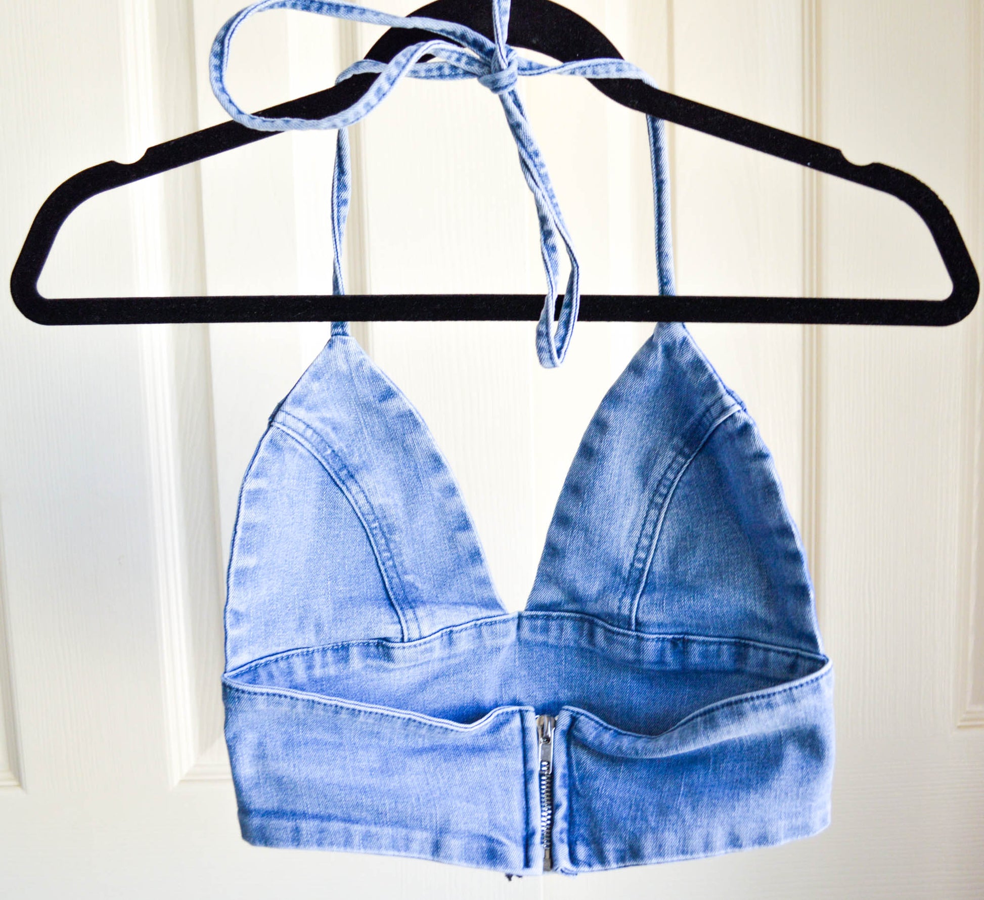 Introducing my one-of-a-kind upcycled denim halter top, designed and dyed with unique real cannabis leaves to showcase your love for the plant. This top is sustainably made using repurposed denim sourced from Buffalo Exchange, ensuring that you're not only looking great but also doing your part for the environment.