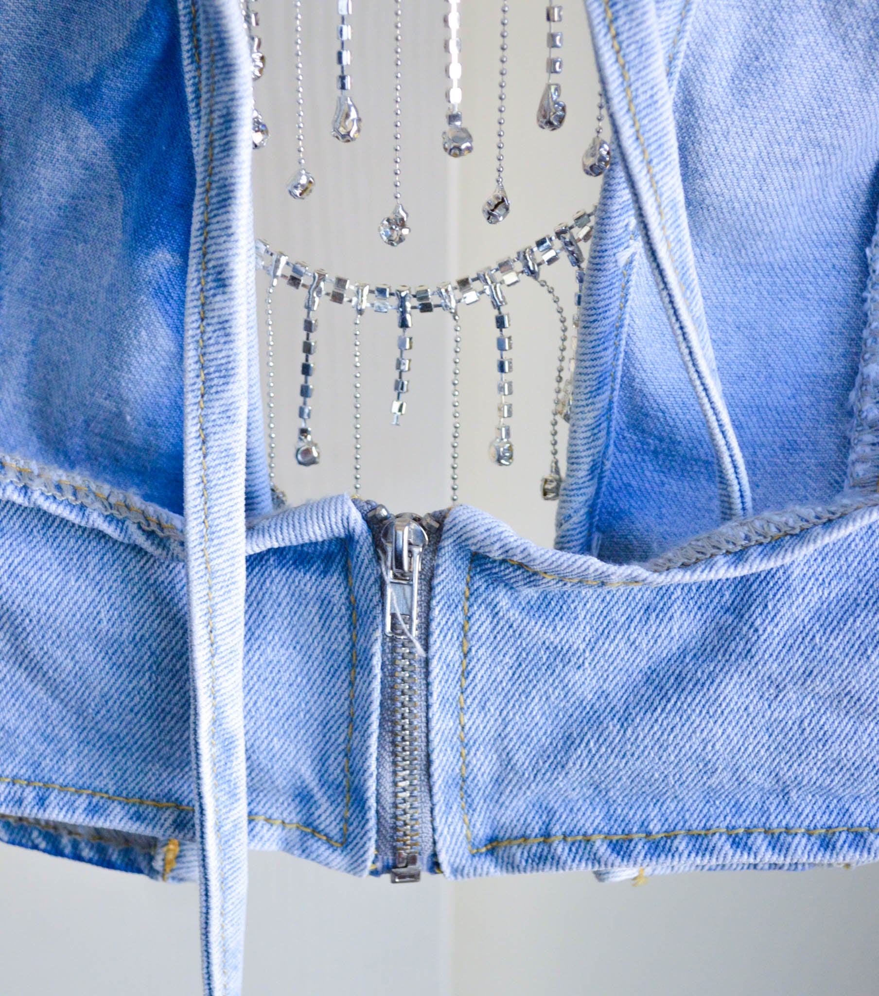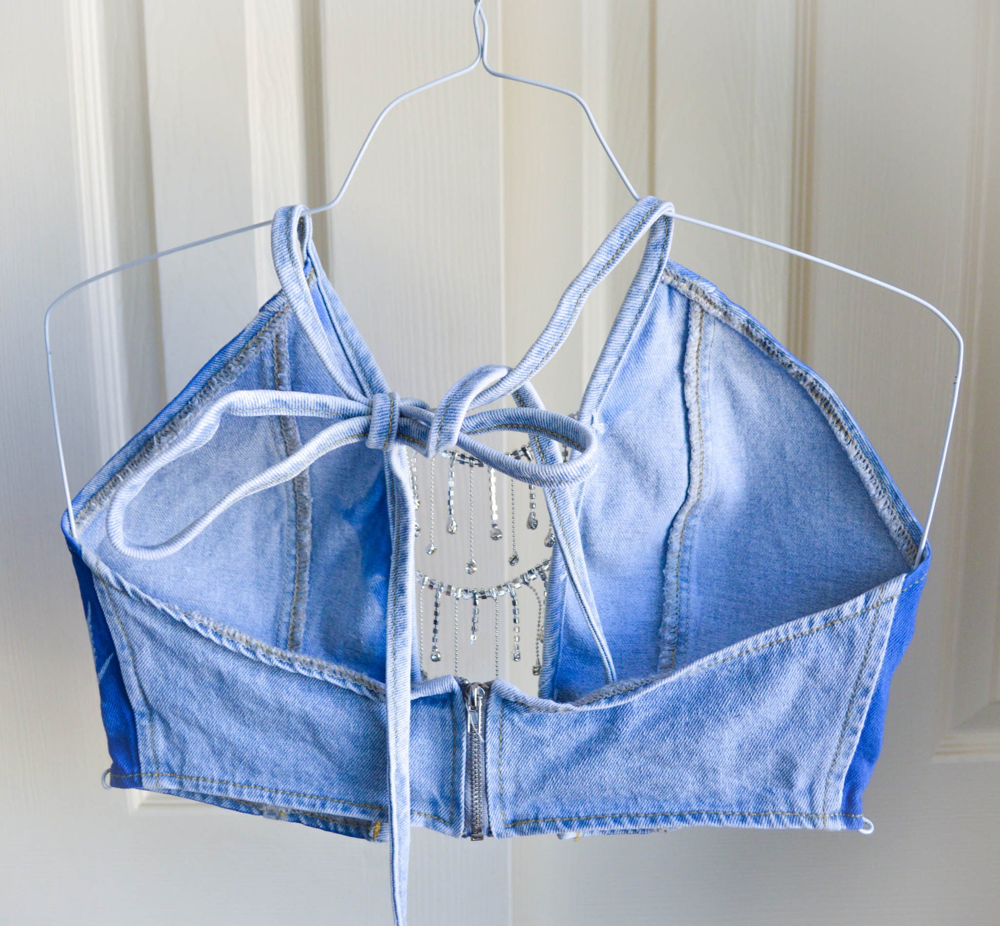 Whether you're heading out to a festival, meeting up with friends, or just running errands, this top will make a statement and elevate your style to new heights. Shop my sustainable upcycled denim collection today and make a bold statement with your fashion choices.