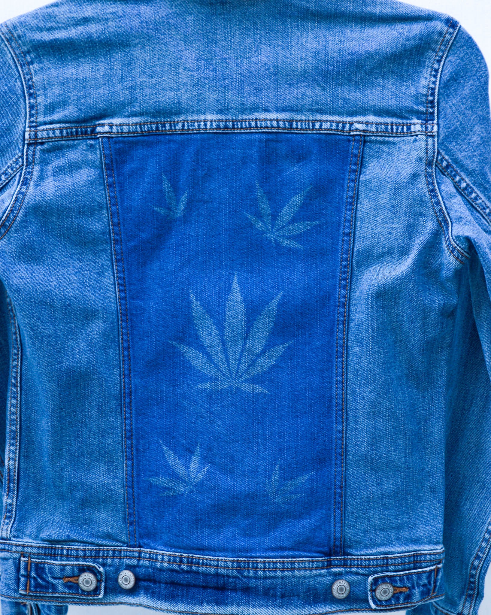 Introducing my one-of-a-kind upcycled denim jacket, designed and dyed with unique real cannabis leaves to showcase your love for the plant. This jacket is sustainably made using repurposed Old Navy brand denim, ensuring that you're not only looking great but also doing your part for the environment.